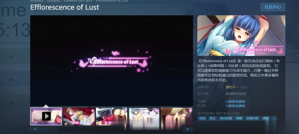 地址:https://store.steampowered.com/app/1215260/Efflorescence_of_Lust/