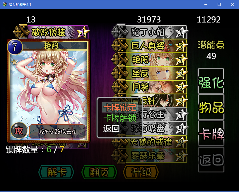 角色都是我们喜闻乐见的热门女角色,有丰富的升级和强化系统,当然界面全都是绅士版!