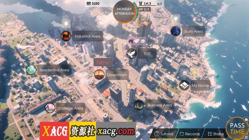 现在,地图上的位置不再只是为了展示。你实际上可以点击一个位置打开一个可用操作的菜单,比如清理垃圾、做文书工作、提高女孩的爱情水平,甚至触发特殊的附带故事。